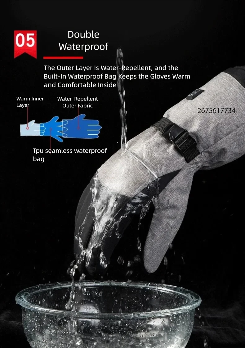 Winter Warm Moto Heated Gloves Rechargeable 5000Mah Ski Electric Heated Gloves Outdoor Windproof Bicycle Heating Gloves Men